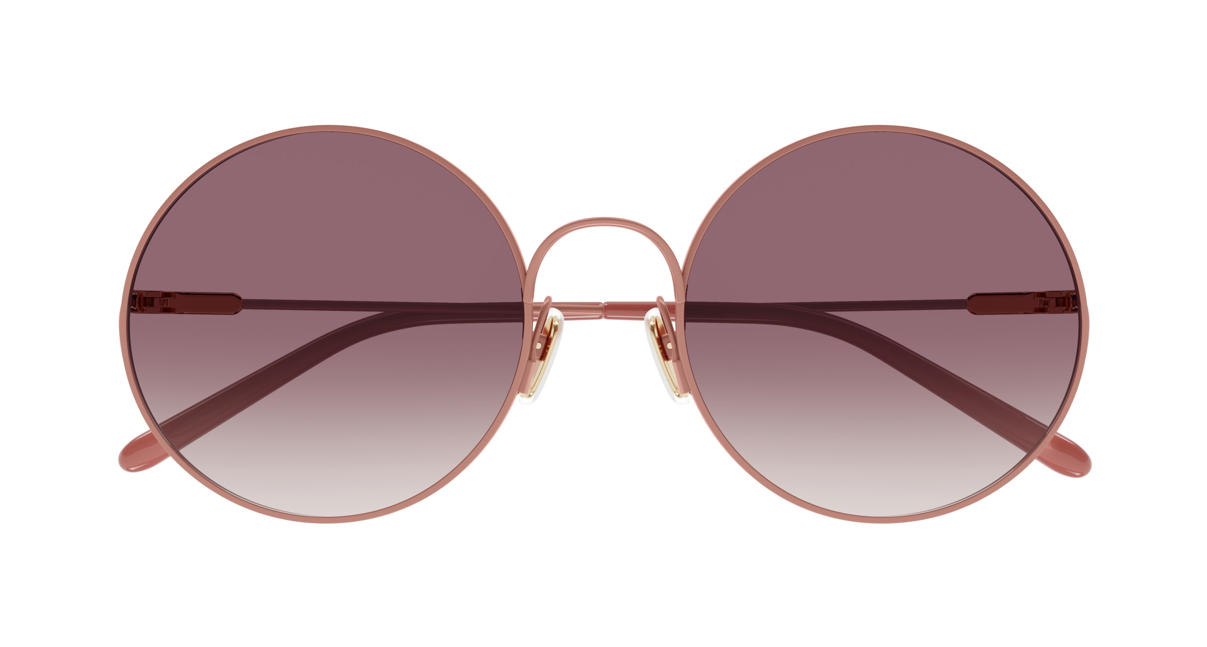 Coleção de óculos de sol Chloé Kids,  com armação pêssego escuro envernizada brilhante e lente roxa degradê.
